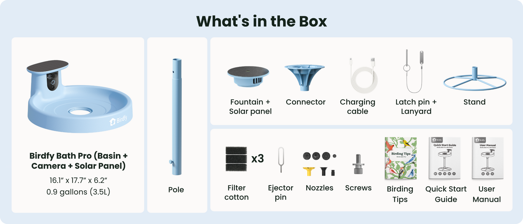 *Included in the Birdfy Bath Pro with Stand version.