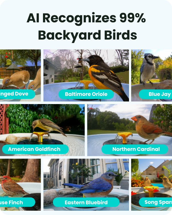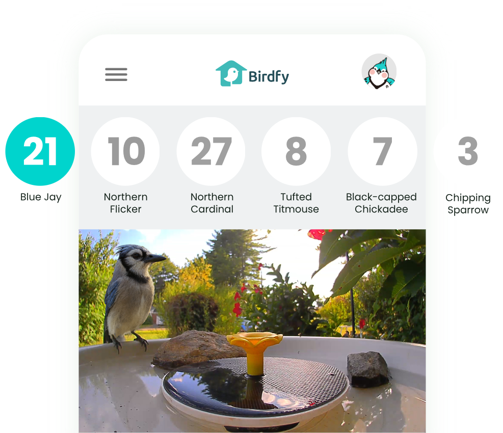 - Daily Highlights: Count how many birds you've got at your bird bath today, identify first-time visitors, and enjoy the freshly delivered best shots!