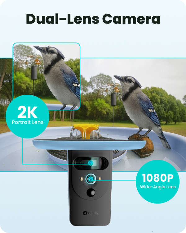 While the wide-angle lens captures video clips, the smart portrait lens automatically zooms in, sending feather-detailed bird videos straight to your device, making your backyard the goal of every birdwatcher. -