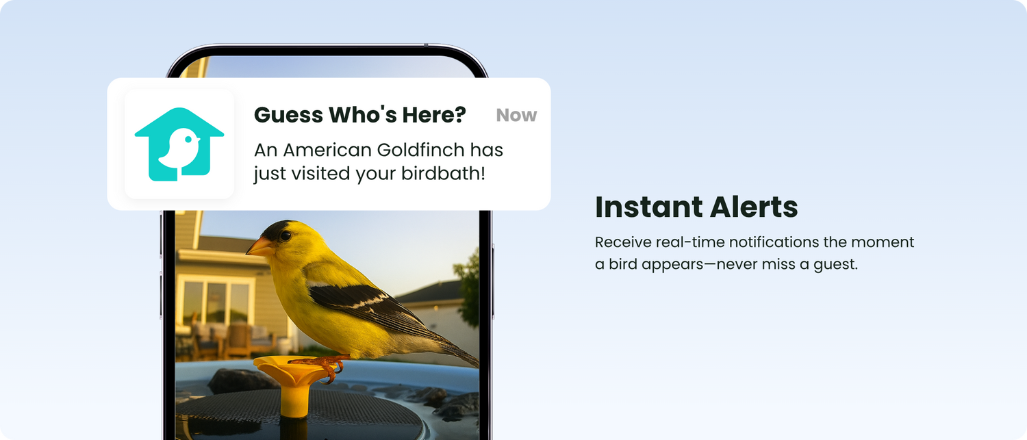 AI-powered motion detection sends instant notifications to your phone whenever a bird arrives.
