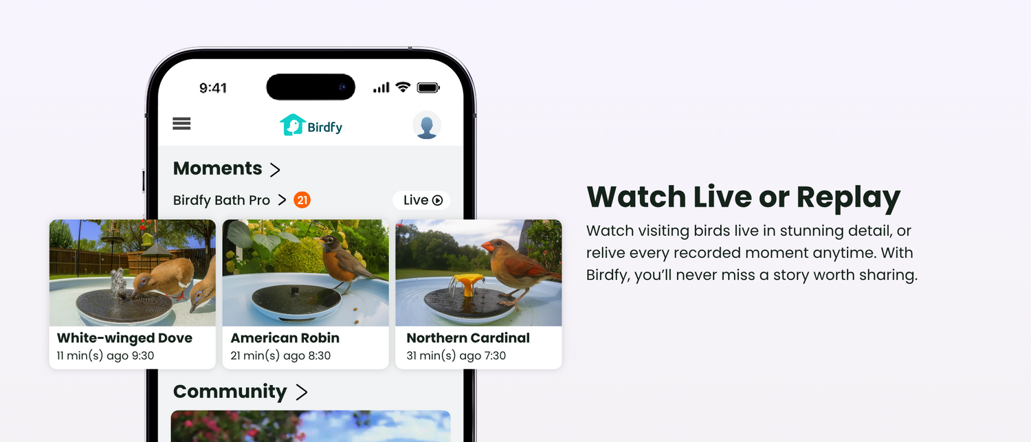 View, save, and share HD clips of your birds anywhere. Explore community highlights and manage devices, all in the powerful Birdfy App.