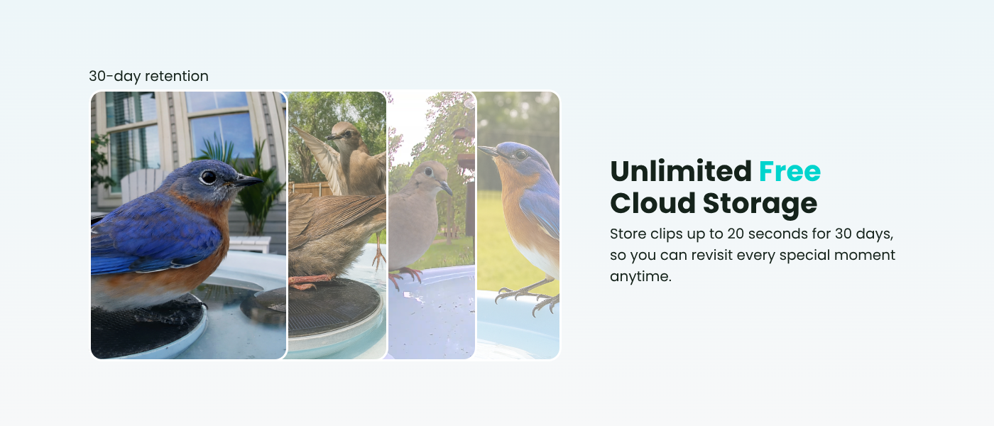 We've combined the bird bath and smart camera to bring you the cutiest splash show. Watch your feathered friends live it up, catching every flutter and dip in real-time. It’s the daily dose of fun and refreshment you didn’t know you needed!